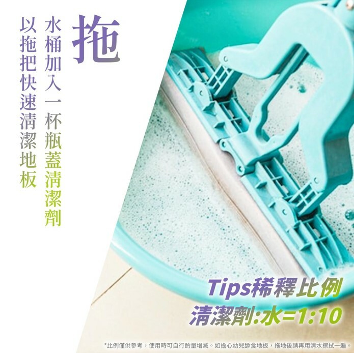 舉例一:使用好神拖 可以倒入20cc在桶子裡 洗拖把的方式