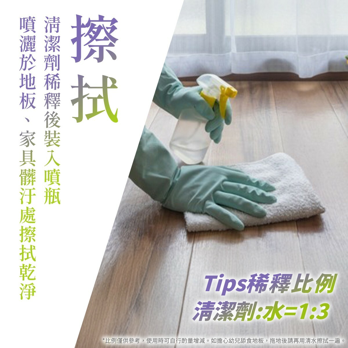 舉例二:使用乾的平板拖布 建議可將噴瓶 再稀釋 3:1 邊噴邊拖 (地板酵素1 清水3 )