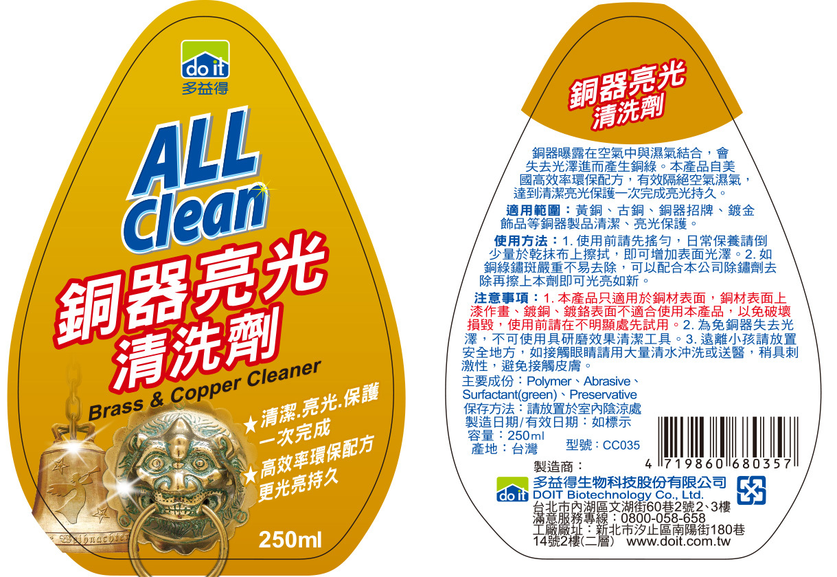 先將表面的灰塵清除後~倒出少量本劑於乾淨抹布(軟布)上、均勻塗抹於銅器,來回多次擦拭直至光亮為止