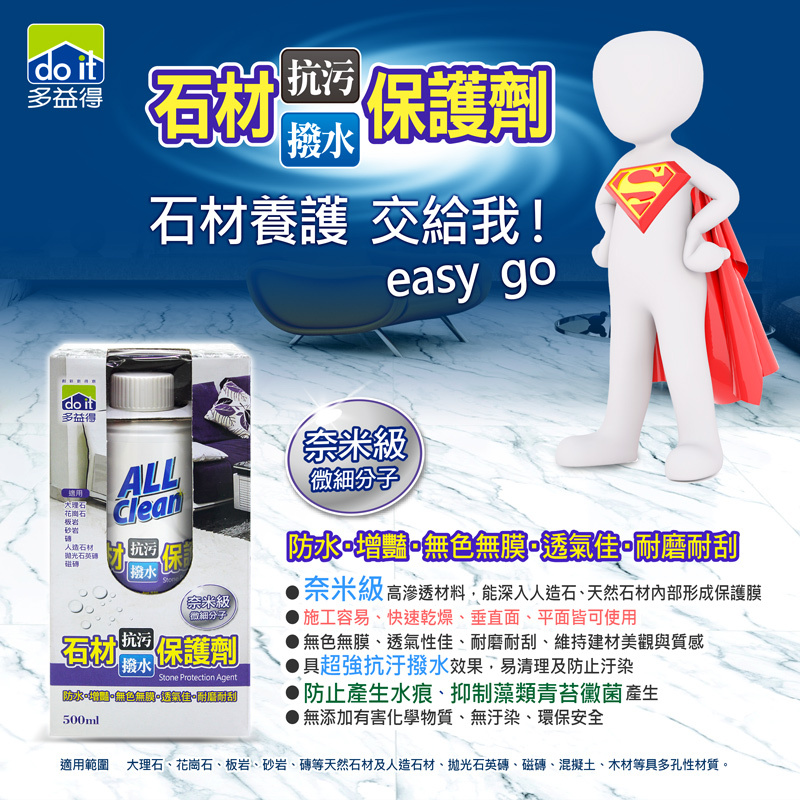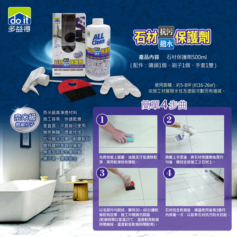 ●奈米級高滲透材料,能深入石材內部形成保護膜