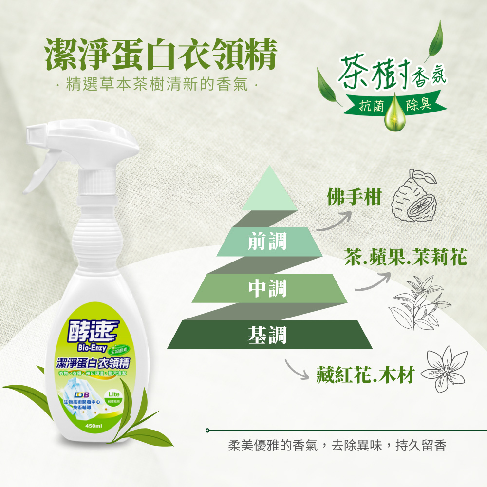 成份:蛋白質分解酵素、椰子醇衍生物、茶樹香氛
