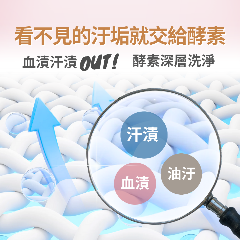 此款洗衣精 濃度最高、 用量最省、 頂級芳香精油 三種酵素成分