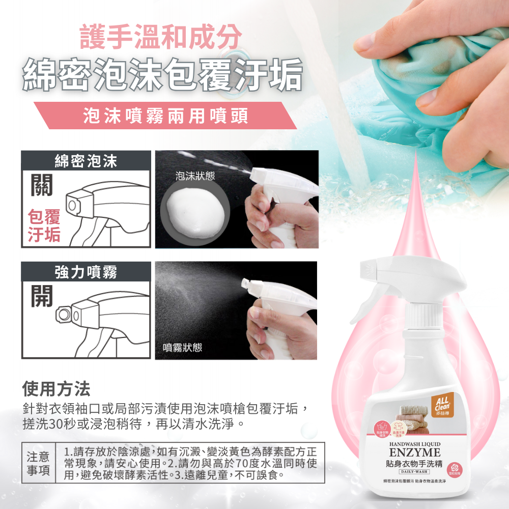手洗精用完 可自行加入多益得任何一款洗衣精+冷開水1:1比例使用