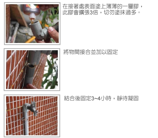 可輕易黏合各種材質,不管是木材、石頭、金屬、陶器、塑膠、保麗龍、玻璃、橡膠…等材質