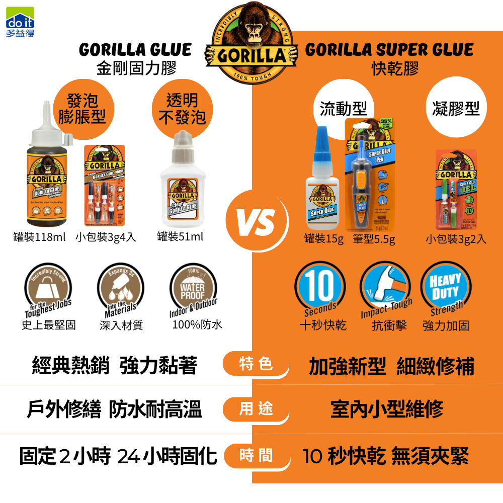 超強黏合力 【Gorilla Glue金剛固力膠3g_4入組】百分之百防水,超強黏合力,