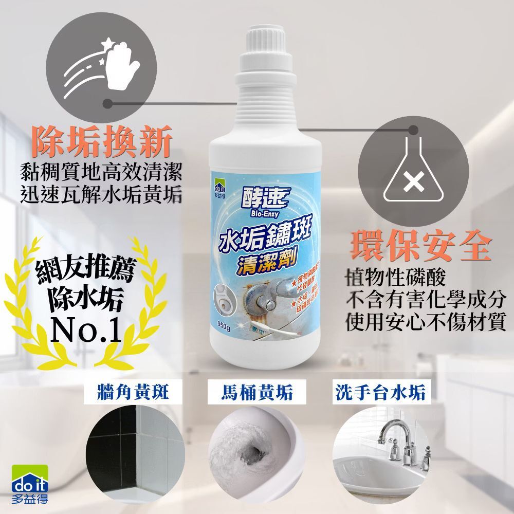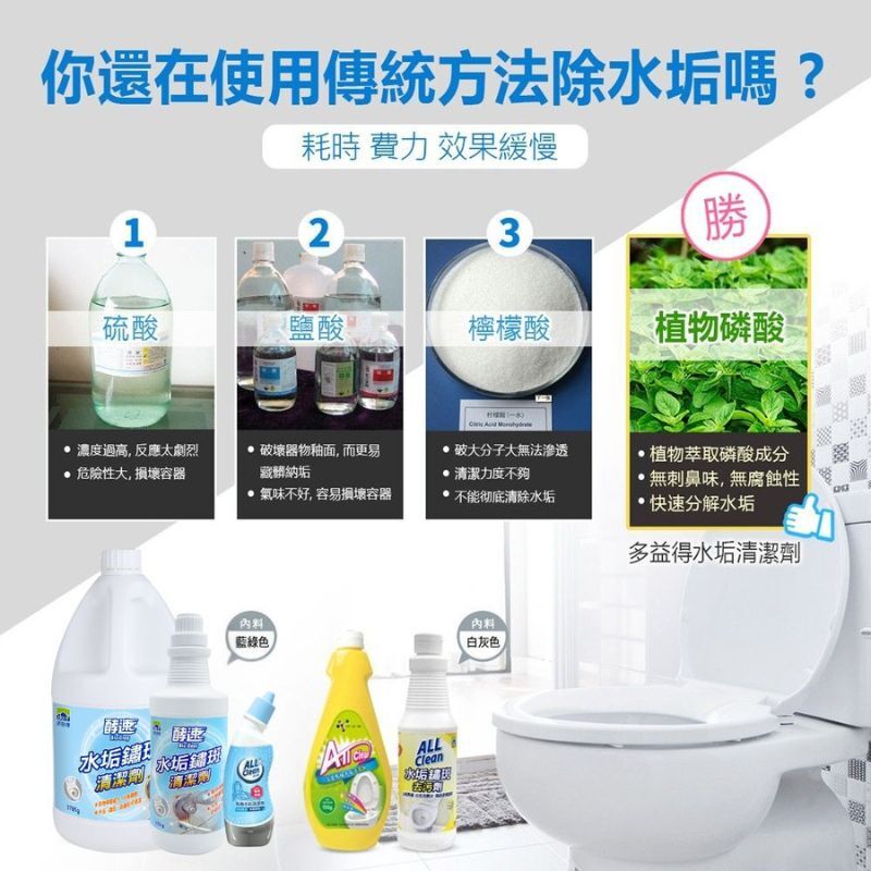 2. 請特別留意 用於玻璃面時 因為玻璃有大小不一的毛細孔,如果該玻璃有使用過化學清潔劑或是化學科技海綿,請務必慎用此品,多益得水垢鏽斑潔劑無石化成份,若是玻璃有殘留化學清潔劑 再堆疊多益得植物酸清潔劑 有可能會有霧化的情況