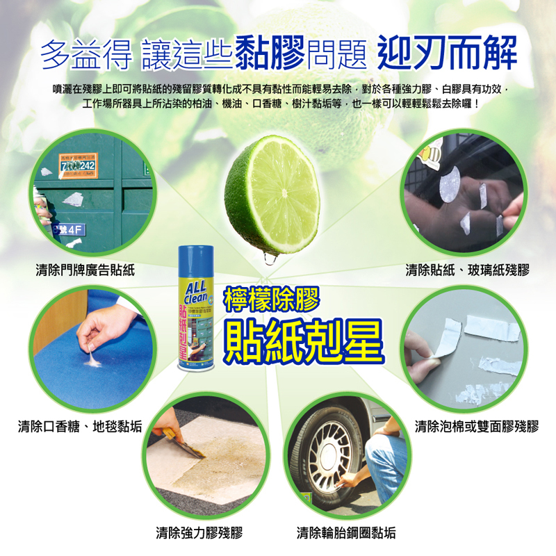 去除貼紙殘膠、輪胎黏垢、車身柏油、強力膠殘膠