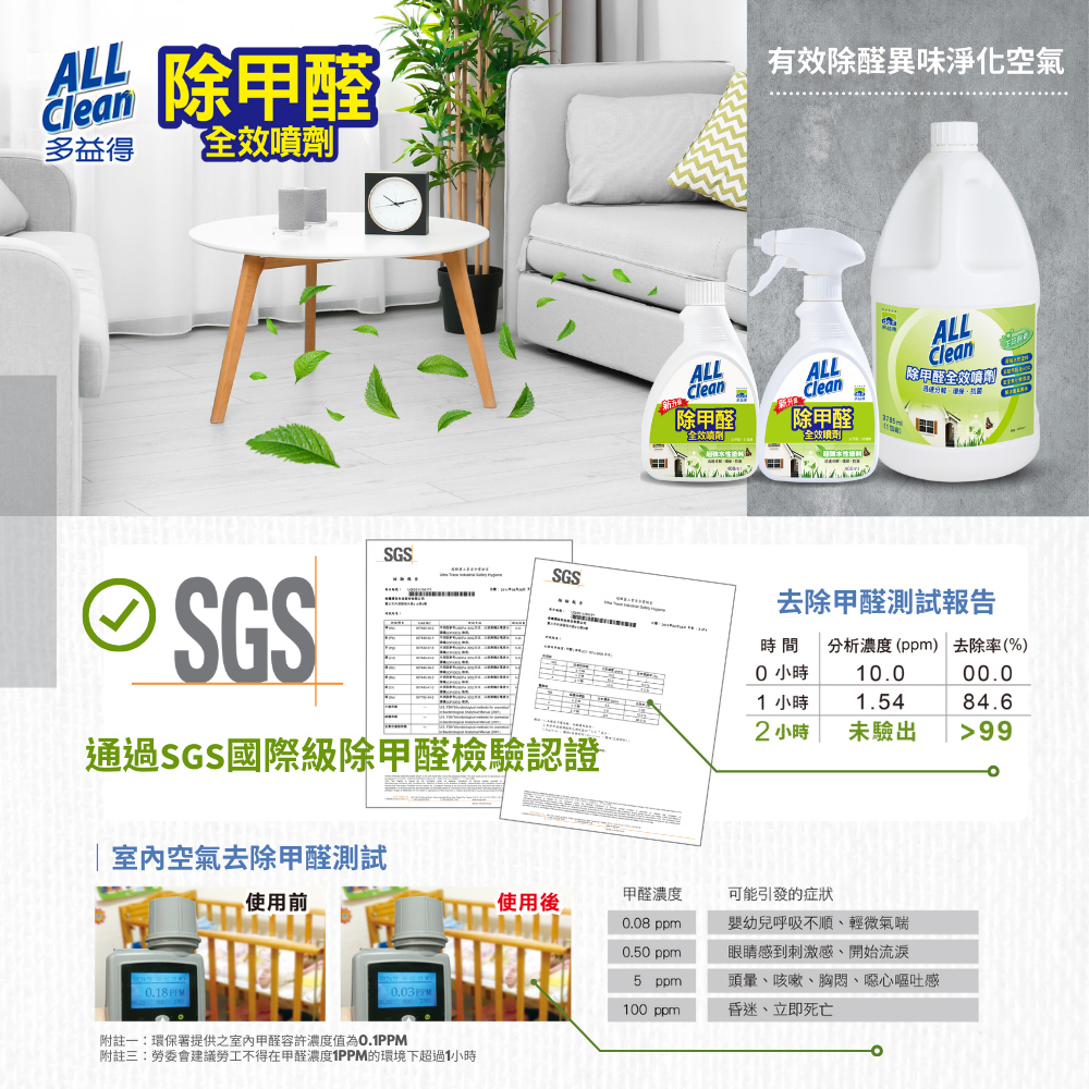 多益得的水性除甲醛,是利用甲殼素去分解室內中的甲醛, 讓釋放在空氣中的甲醛,分解成為對人體無害的氧氣與二氧化碳 , 多益得 All Clean水性除甲醛裝潢前.後都可以使用, 室內甲醛含量與房間的使用時間、通風條件、溫度及相對濕度有密切關係。房屋使用時間越長,溫度越高、濕度越低,越有利於甲醛的釋放。