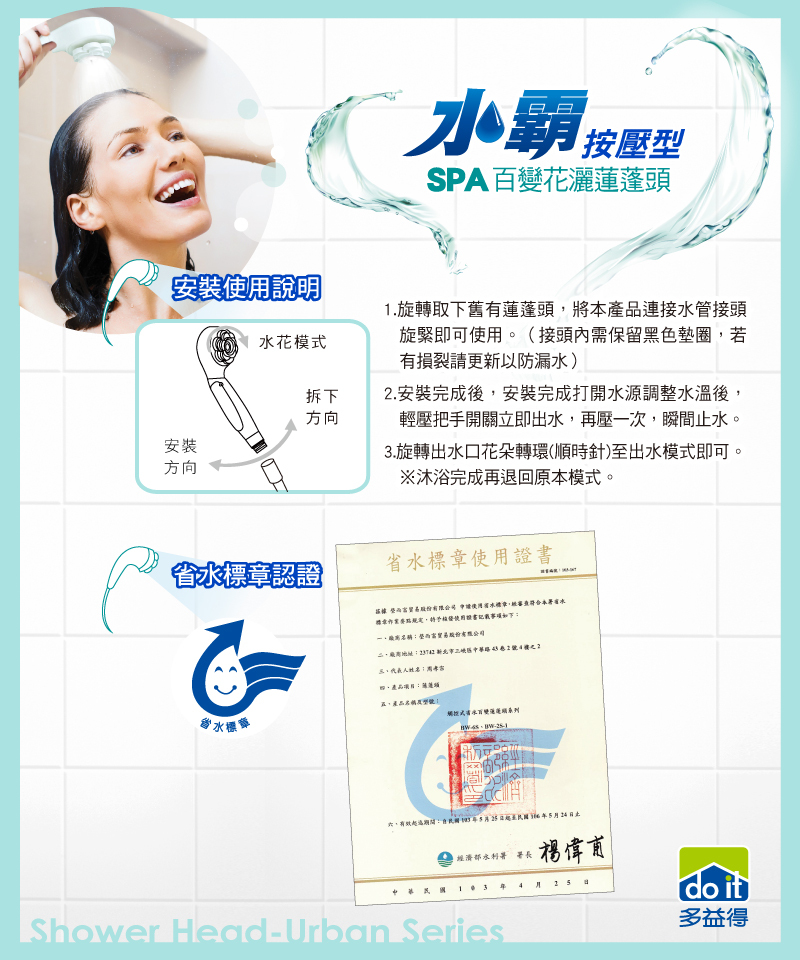 時尚版水霸按壓蓮蓬頭